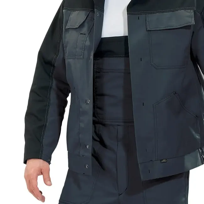 Bluza robocza WORK - kolor grafitowy - została uszyta z najwyższej jakości materiałów - począwszy od firmowej tkaniny KB Textil, przy użyciu nowoczesnych technologii, zapewniających komfort oraz bezpieczeństwo podczas noszenia. Bluza polecana każdemu pracownikowi, bez względu na wykonywany zawód. Dodatkową zaletą jest duża ilość wielofunkcyjnych kieszeni.