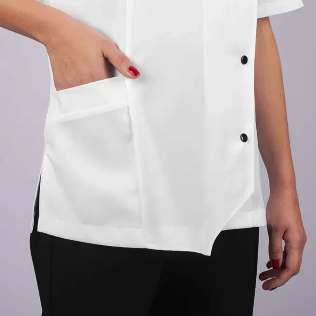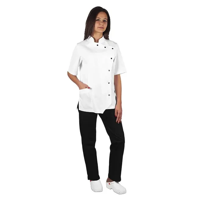Elegancka i stylowa bluza damska w kolorze białym, polskiej marki KEGEL-BŁAŻUSIAK wykonana z tkaniny nowej generacji zawierającej włókno TENCEL. Zapinana na napy z pełną główką w kolorze białym. Bluza jest idealna dla firm, które dbają o profesjonalny wygląd swojego personelu.