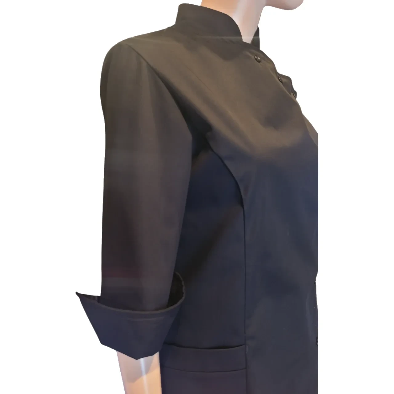 Elegancka i stylowa bluza kucharska damska w kolorze czarnym polskiej marki KEGEL-BŁAŻUSIAK wykonana z wytrzymałej i przyjemnej w dotyku tkaniny. Zapinana na czarne napy z pełną główką w kolorze czarnym. Bluza jest idealna dla lokali, które dbają o profesjonalny wygląd swojego personelu.