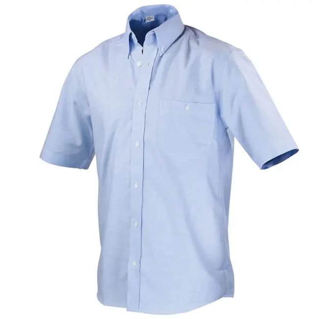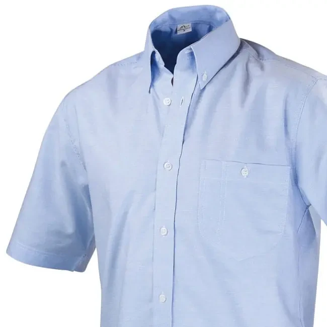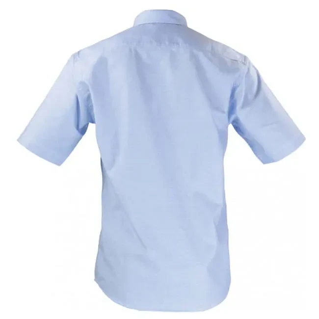 Klasyczna - Elegancka Koszula męska z krótkim rękawem w kolorze błękitnym. Uniwersalna, idealna do pracy oraz jako koszula wyjściowa. Uszyta z wysokiej jakości materiałów. Wygodna i wytrzymała.