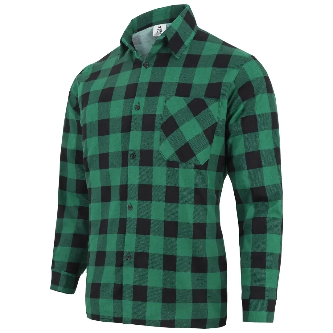 Wygodna i praktyczna koszula flanelowa w zieloną kratkę. Wykonana jest z bardzo dobrej jakości flaneli (100% bawełnianej) zapewniającej duży komfort użytkowania.