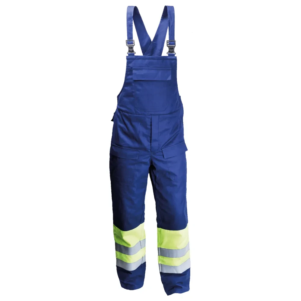Ogrodniczki Multiochronne Ocieplane Hi-Vis - kolor granatowy CE EN ISO 13688 EN ISO 11611 EN ISO 11612 EN 13034 EN 1149-5 EN ISO 20471