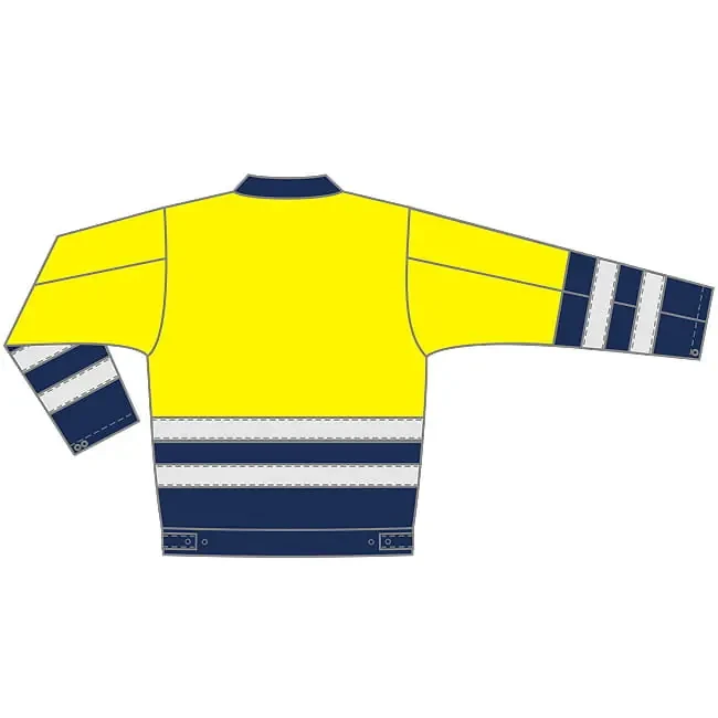 - 2 rzędy pasów taśmy odblaskowej o szerokości 5 cm w dolnej części korpusów oraz na końcach rękawów