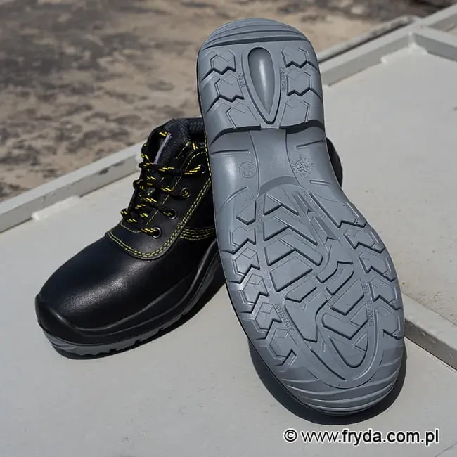 - podeszwy wykonano z poliuretanu w kombinacji dwuwarstwowej, posiadają właściwości olejoodporne, antypoślizgowe, antyelektrostatyczne, z absorpcją energii w części piętowej