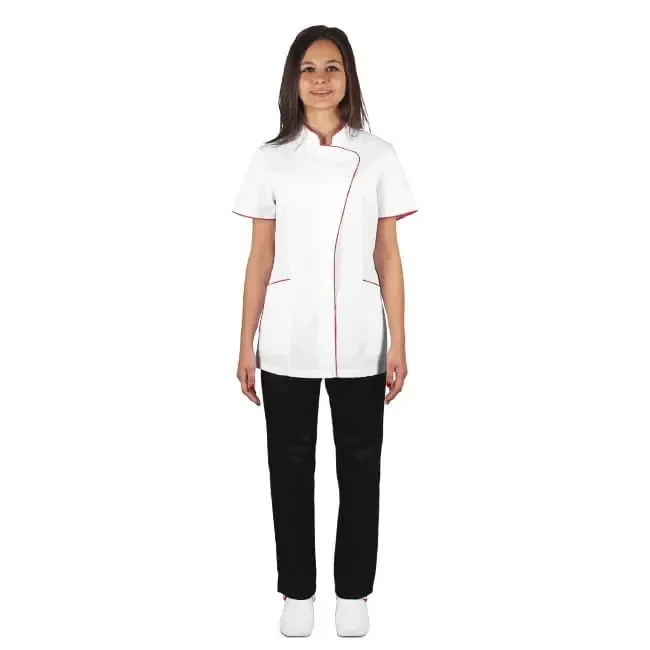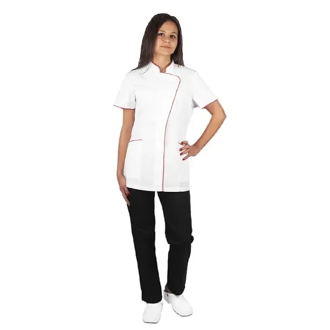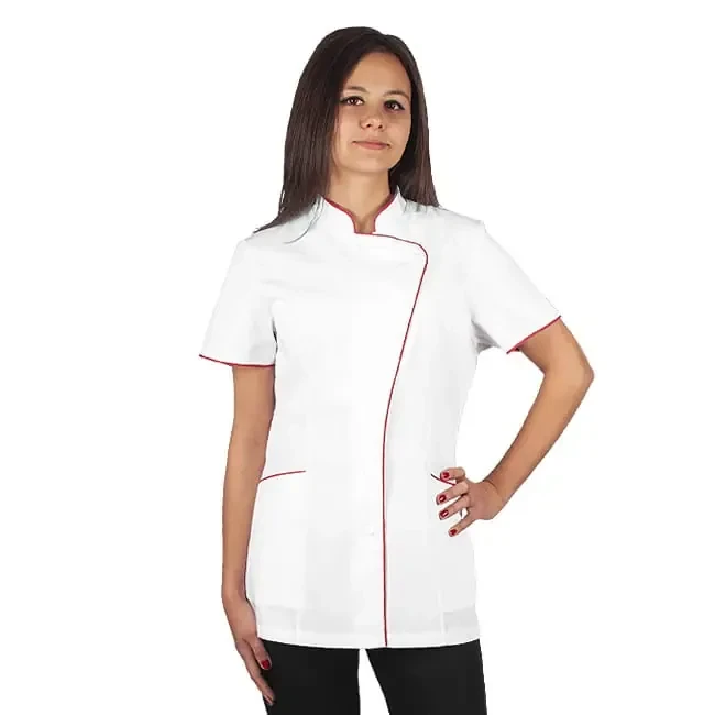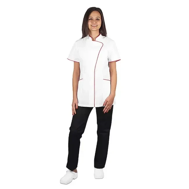 Bluza biała damska z krótkim rękawem dla medycyny oraz kosmetyczek: