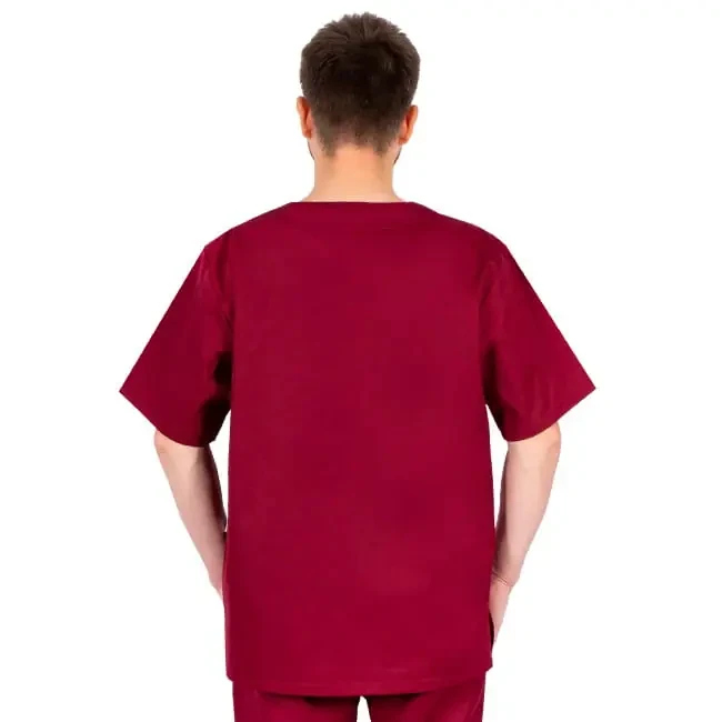 Scrubs bordowa bluza medyczna z krótkim rękawem
