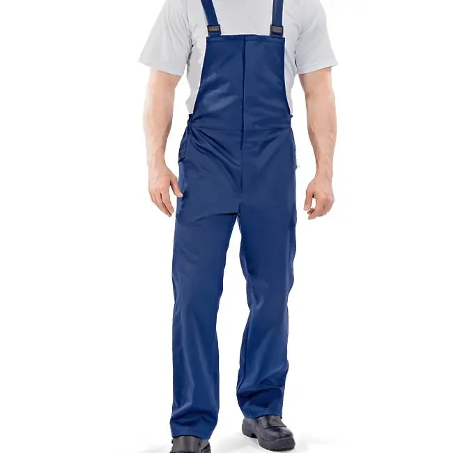 Spodnie Ogrodniczki Trudnopalne dla Spawacza - kolor niebieski CE EN 340, EN ISO 11611, EN ISO 11612