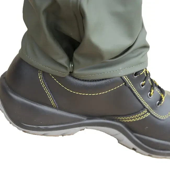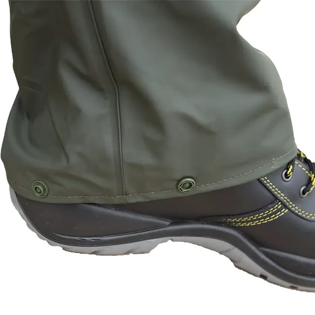 Wygodne spodnie przeciwdeszczowe wykonane z grubego poliuretanu co zapewnia im dłuższy okres użytkowania niż w przypadku innych standardowym spodni przeciwdeszczowych tego typu. Materiał ten również lepiej chroni przed zamoczeniem nawet w trakcie dużego deszczu. Naszyte taśmy odblaskowe zapewniają lepszą widoczność osoby pracującej w warunkach ograniczonej widoczności. Spodnie posiadają luźny fason, dzięki czemu łatwo można je założyć na zwykłą odzież.